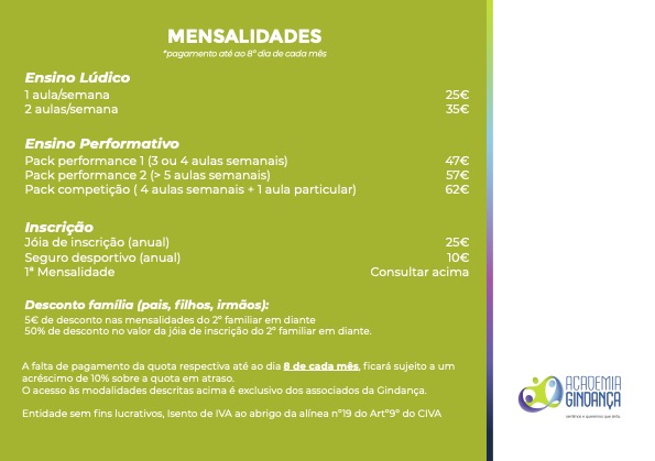 Mais informações sobre a campanha e quotização mensal através do mail geral@gindanca.com